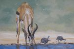 Springbok drinking acrylics on hand made paper Art