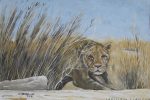 Stalking lion acrylics on hand made paper Art